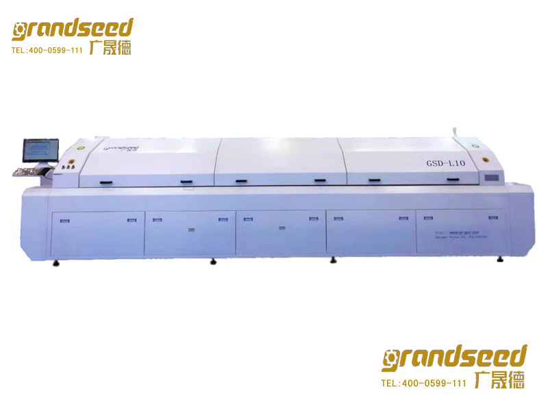 廣晟德大型十溫區無鉛回流焊設備GSD-L10外觀結構優(you) 勢 控製係統特點 整機性能優(you) 勢 細節圖片 技術參數。可專(zhuan) 用於(yu) 電腦主板和新能源逆變器線路板的回流焊接生產(chan) 。
